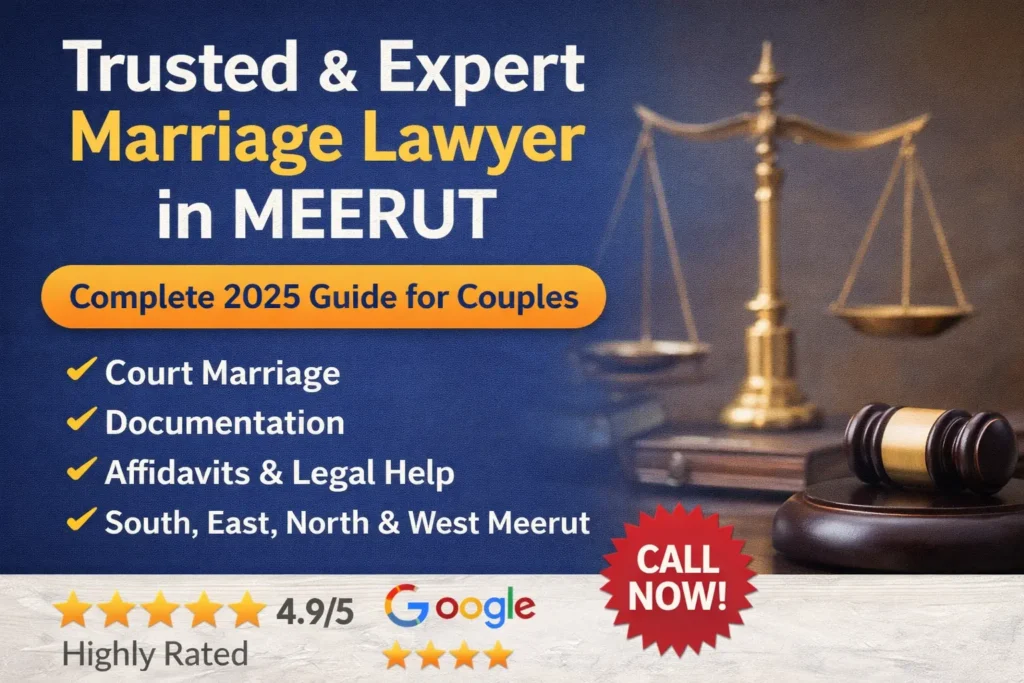 Trusted & Expert Marriage Lawyer in Meerut: Complete 2025 Guide for Couples If you and your partner are planning to start your new life together, court marriage in Meerut is one of the simplest, safest, and most legal ways to make your relationship official. And honestly, as someone who has helped many couples understand the process, I know exactly how confusing it can feel in the beginning.